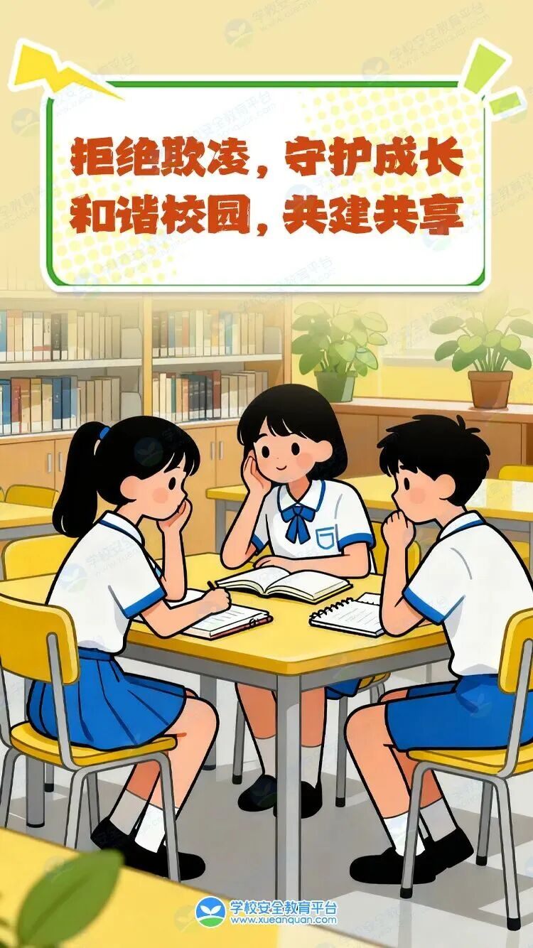 为有效预防学生欺凌,保障同学们身心健康、平安成长,我们为大家送上防欺凌“秘籍”。让我们一起正确认识学生欺凌、自觉向学生欺凌说“不”,共同守护平安、文明、快乐的校园生活!